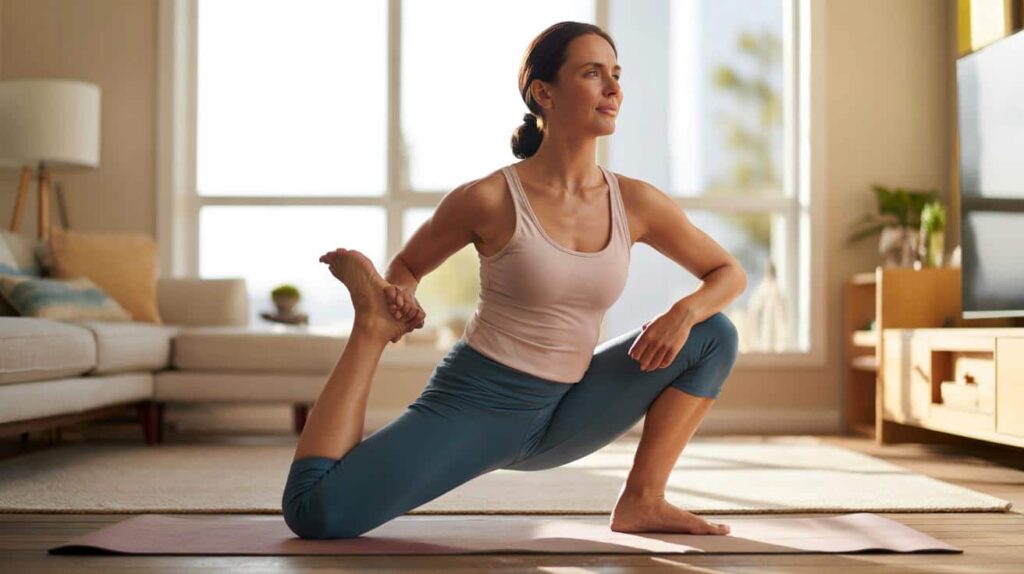 Die Halb-Kniestand-Dehnung wirkt wie ein Reset Gezielte Streckung der Hüftvorderseite mit ruhiger Atmung Konkretes Werkzeug, das ohne Geräte zuhause angewendet werden kann